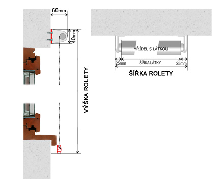 správné překrytí na stranách a přičíst 5 cm pro úchyty. Tím vznikne celková šířka rolety, která se zadává do kongifurátoru.